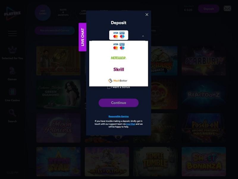 Playerz Casino 支持多种标准支付方式,例如支付卡、电子钱包和银行交易。在撰写本文时,其提供的银行支付方式还包含针对特定市场的优惠选项,例如针对印度在线赌场玩家的RuPay 。