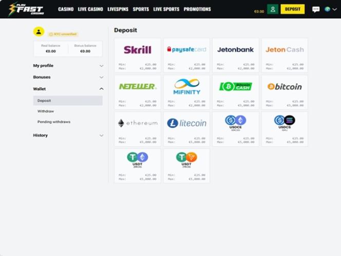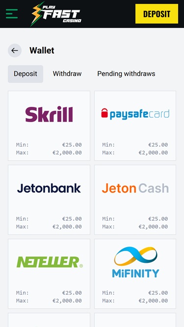 - PlayFast 可能会拒绝接受任何存款,无需任何解释。