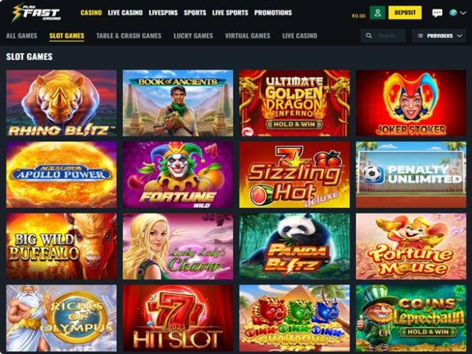 PlayFast 拥有丰富的老虎机游戏,其中包括众多热门游戏:Buffalo Rampage、Lucky Mr. Patrick、Magical Amazon、Book of the Divine、Book of Clovers、Goddess of Lotus、Joker Win、4 Horseman II、Age of Pirates、Braindead、Mancala Quest、Crystal Mine、Portal Master、Starwins、Coco Tiki、Cherry Bombs、Zero Day、Noche Oscura、Wicked Heart、Monster Thieves、Copper Dragon、Club Garage、Gun's Heat、Voodoo Spells、#Casino Night、Green&Greedy、Blood Romance、Rage of Zeus、Western Tales、Wildfire Fruits、Wacky Monkey、1 Reel Egypt、Trojan Tales、Book of Champions Reloaded、Winners Gold、Book of the divine Reloaded、Poseidon's Rising、Book of Demi Gods III、Beer Collection、Fruits Collection、Egyptian Eclipse、Titan's Rising、Book of Champions、African狂暴、武士故事、火之女王、阿兹特克咒语等等。