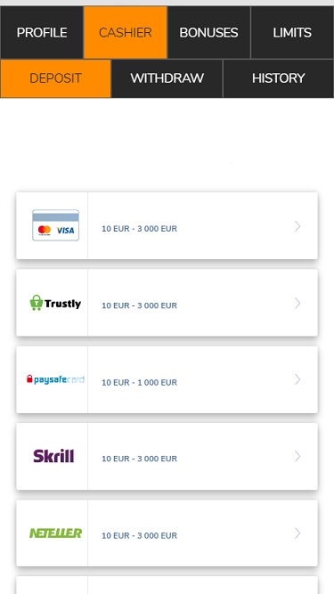 下面您将看到 Playigo Casino 提供的各种银行业务选项。