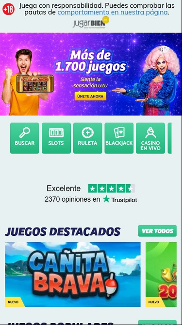 这个游戏网站面向来自西班牙和墨西哥的玩家,其平台设计精美,白色背景搭配鲜艳的蓝紫色细节。虽然看起来相当漂亮,但我们不得不承认,网站给人的第一印象是“内容丰富”。对于专注于在线赌场游戏的玩家来说,这可能有点难以接受,但从美学角度来看,设计师的选择仍然非常令人满意。