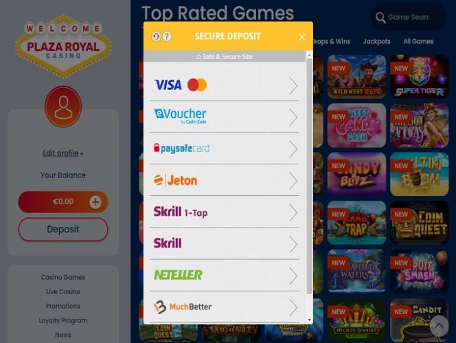 皇家广场赌场的出纳柜台提供多种传统支付选项,玩家可以通过可靠的银行方式(例如支付卡、银行电汇、电子钱包和其他各种在线支付系统)轻松存款和取款。遗憾的是,不支持加密货币支付。
