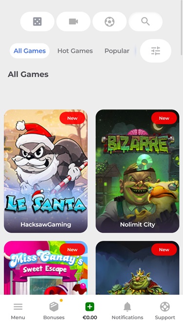 赌场网站明亮简约,旨在吸引那些喜欢简洁实用界面的玩家,该界面针对所有设备(包括台式电脑和移动设备)进行了优化。绝对没有任何元素能够分散玩家对游戏的注意力。