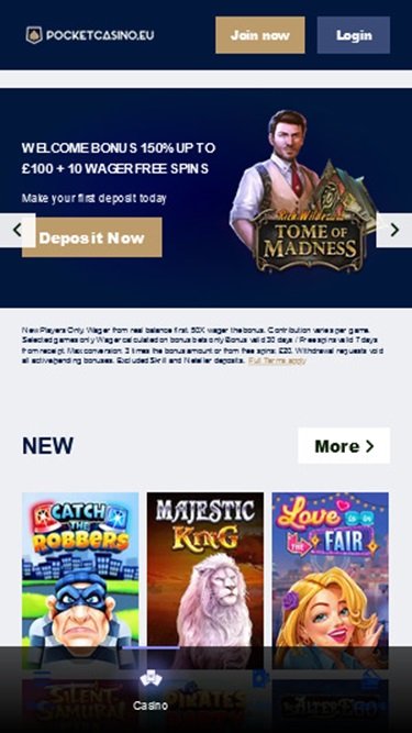 Pocket Casino 是一个在线博彩网站,由 Cozygames Management Limited 于 2015 年创立。该网站专为移动端游戏设计,但也支持桌面端游戏。除了数百款游戏外,该赌场还提供累积奖金,并提供完善的移动端体验,如果您想在移动设备上玩游戏,这里是理想之选。