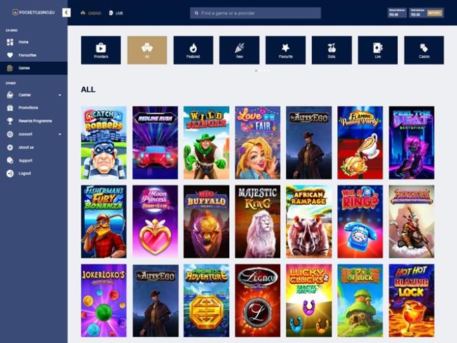 Pocket Casino 提供众多老虎机游戏,其中包括来自世界顶级开发商的众多视频和经典老虎机。此外,该赌场还提供累积奖金,价值数百万美元的奖金等您来赢取。