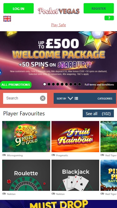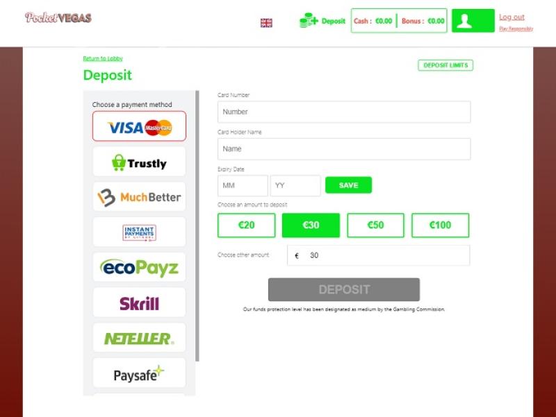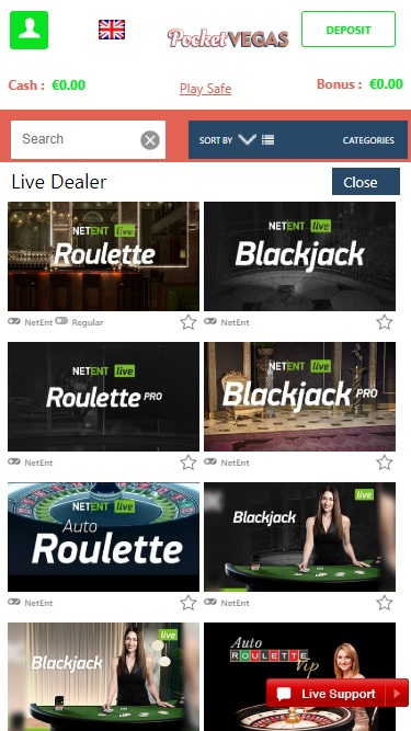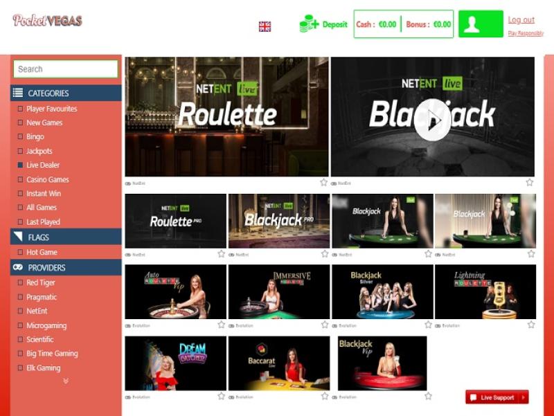 Pocket Vegas 赌场由 Microgaming, Net Entertainment, Big Time Gaming, ELK Studios, Evolution Gaming, EYECON, lightningboxgames, Yggdrasil, Realistic Games, Pragmatic Play, Red Tiger Gaming, IGT, Skillzzgaming, Golden Rock Studios, Games Global, Blueprint Gaming, Merkur Gaming, Nektan, NextGen, NYX Interactive, Inspired Gaming, Scientific Games, Iron Dog Studio, Foxium, Just For The Win, The Games Company, Rocksalt Interactive, 4ThePlayer, Crazy Tooth Studio, ReelFeel Gaming and Half Pixel Studios提供支持,其游戏通过基于网页的即时游戏平台提供,您可以通过智能手机或平板电脑的网页浏览器访问网站。移动游戏是这里支持的主要平台,但您也可以通过台式电脑访问游戏。Baccarat