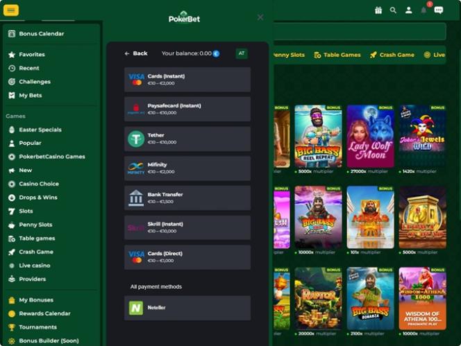 运营商只允许每人注册一个账户。如果玩家注册多个账户,所有账户将被立即关闭。 赌场有权自行决定关闭任何账户,无需提供理由或事先通知。 任何超过 12 个月未使用的账户将被视为不活跃账户,对于此类账户,运营商有权收取月费。 所有玩家均需验证账户 ,并向运营商提供有效的身份证明文件、不超过三个月的地址证明,或赌场工作人员(包括财务部门)要求的其他文件。所有文件的复印件均可通过电子邮件发送至客服团队。运营商有权要求提供经公证的文件复印件。 如果玩家未完成验证流程,PokerBet Casino 有权拒绝处理提款请求。 提现可能需要支付手续费。 所有存款必须先用于游戏并投注一次,才能提出提款申请。 最高提款金额取决于 VIP 等级,这意味着 VIP 等级越高的玩家每月可享受的提款限额越大。 严格的“同名”政策:付款方式必须与已验证账户持有人的身份相符。 可通过授权检查来验证持卡人身份。 为了遵守规定和控制风险,大额提款可能会分多次支付。 存款退款通常会退回到原卡,而奖金则会通过认可的其他方式支付。 奖金将被锁定,直到完成所有投注要求。 如果连续 12 个月没有活动,可能会收取不活动费(例如,每月 5 欧元)。 如有未完成的投注或待进行的游戏回合,提款将被阻止。 PokerBet会员可以使用多种法定货币和加密货币 ,包括澳元、巴西雷亚尔、加元、美元、欧元等,以及比特币现金、比特币、达世币、以太坊、莱特币、泰达币等。