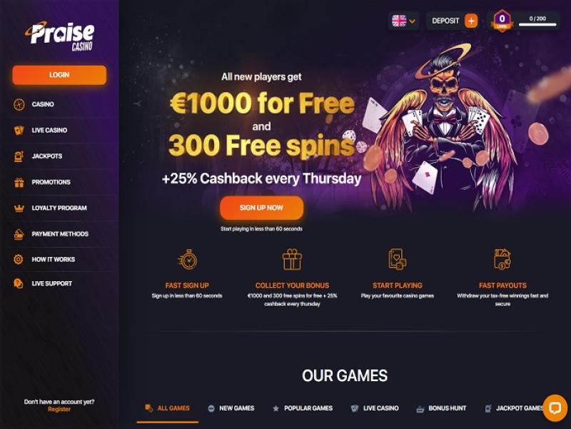 这里拥有超过4000款游戏,涵盖所有主流博彩类别,包括真人娱乐场。Praise Casino提供丰厚的奖金和促销活动,以及25种支付方式(支持Trustly)和实时聊天服务,致力于提供业内最高水准的服务。