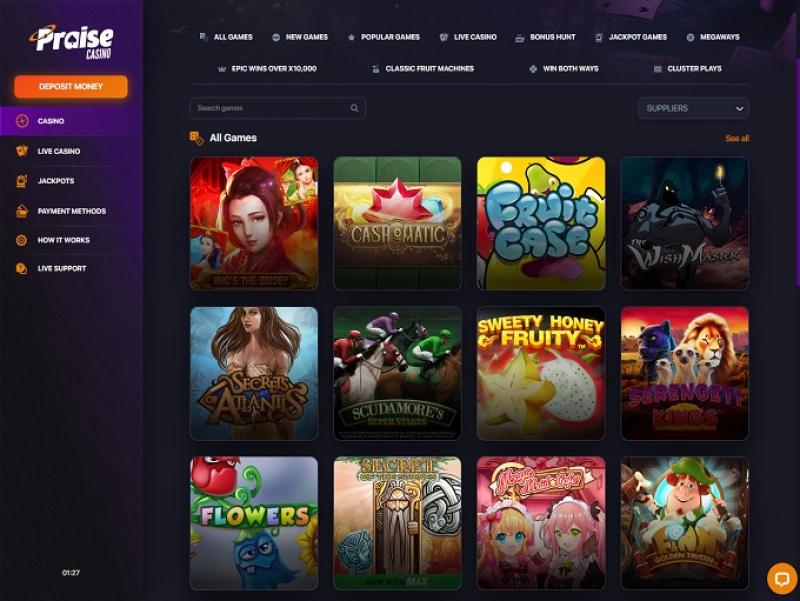 Praise Casino 由全套 iGaming 解决方案供应商和聚合商SoftSwiss提供支持,其游戏库中拥有超过 4000 款游戏,涵盖从 NetEnt、Play'n GO 和 Yggdrasil 等业内资深游戏,到拥有创意老虎机技术和最先进图形的开发工作室,如Quickspin 、iSoftBet、Red Tiger、ELK 等。