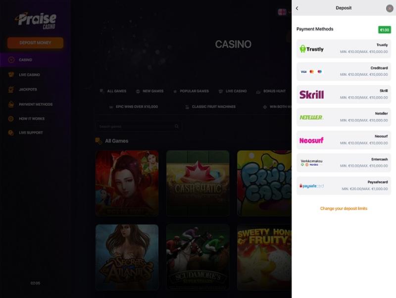 下面您可以看到有关 Praise Casino银行业务选项的更多内容,包括存款到取款方式。