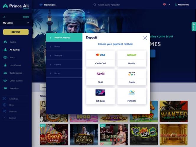 PrinceAli 是一个现代赌场品牌,它使用 SSL 连接协议来保护数据并确保银行交易安全。