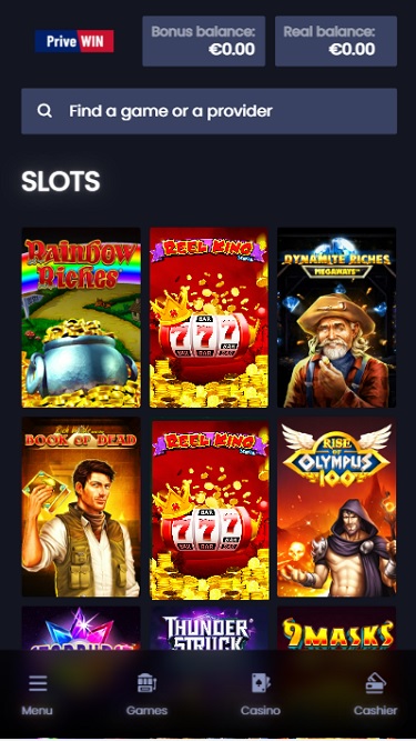 赌场平台简洁易用,设计精良,注重游戏体验。无论您是手机玩家还是电脑玩家,Prive Win 都能为您带来刺激刺激的博彩体验。