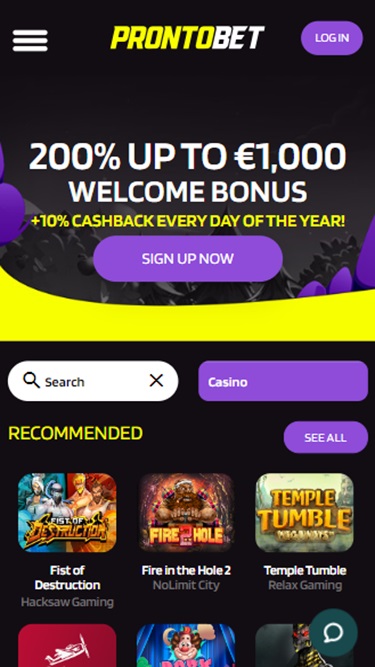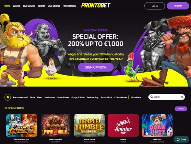 Prontobet Casino 是一家在线赌场,由经验丰富的运营商所有,根据库拉索法律注册,并由库拉索政府颁发牌照和授权。我们特别关注来自挪威、瑞典、芬兰、德国、加拿大、新西兰和爱尔兰的赌场访客。