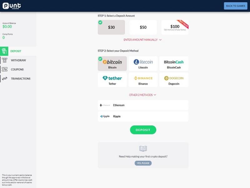 正如我们已经提到的,Punt Casino 是一个加密在线赌博品牌,它支持各种加密存款和取款支付方式。