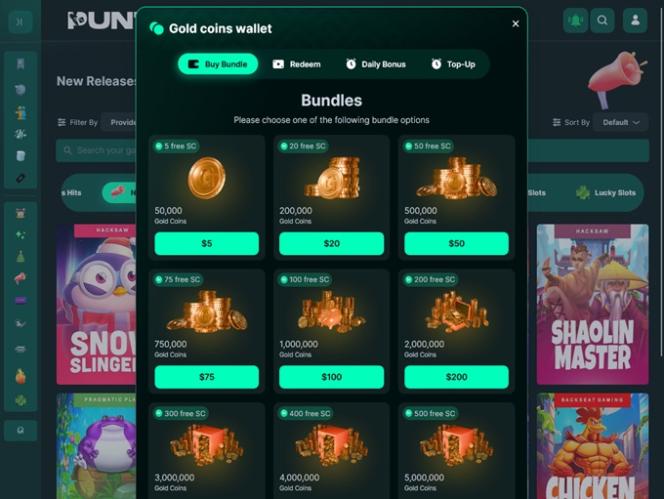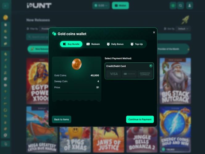 Punt Casino 成立于 2024 年,是一家面向美国的社交和抽奖游戏网站,因提供各种赌场风格的游戏(包括在线老虎机、真人荷官和原创游戏)而备受关注。该品牌提供丰富的促销活动、每日奖励、奖金以及挑战等游戏化元素,让玩家乐此不疲。