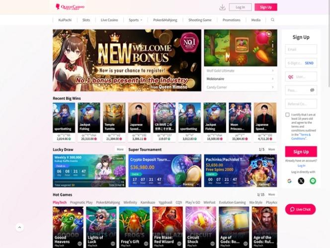 Queen Casino是⼀家线上押注⺴站, 创⽴于2018年, 由Class Innovation B.V.营运。赌场专注于亚洲的博弈市场, 俱备全⽅位的slots⽼⻁机, table games赌桌游戏, live dealer真⼈荷官游戏。该⺴站对于亚洲的赌客提供不 错的选择, 然⽽欧洲或其他地区的玩家则有更好的选项。赌场资讯