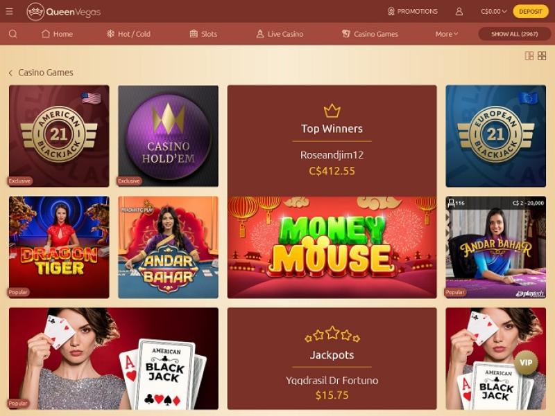 除了标准的赌场游戏外,Queen Vegas Casino 还为客户提供真人荷官赌场。
