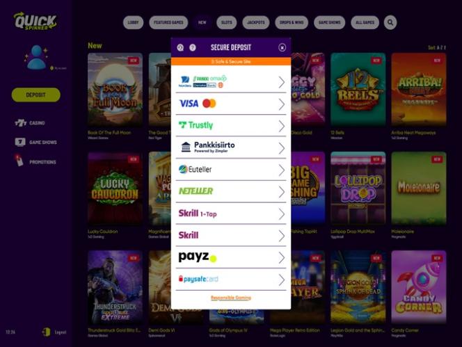 如果您想知道在 Quickspinner Casino 可以使用哪些付款方式进行存款和取款,那么您会很高兴知道该品牌提供多种付款方式。玩家可以使用Visa 、 Mastercard 、 Skrill 、 Neteller 、 Payz 、 Paysafecard 、 Trtustly 、 Astropay和其他传统方式管理资金。