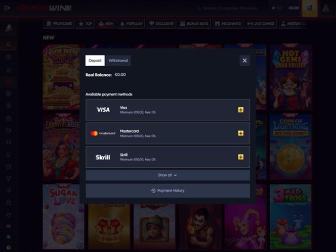 该运营商专注于吸引来自德国、芬兰、挪威、加拿大和新西兰的在线赌场玩家,但 Quickwin 也欢迎来自其他赌博管辖区的玩家。