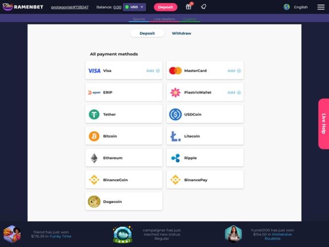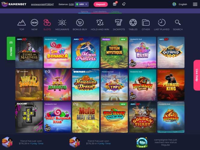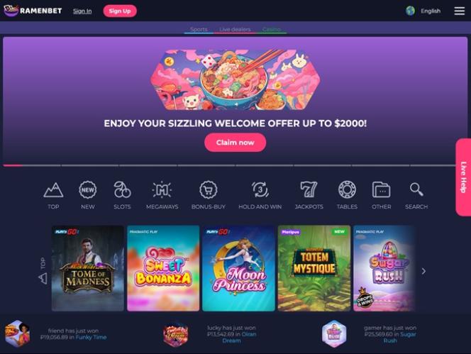 Ramenbet Casino 是一家体育博彩运营商和在线赌场,由一家根据库拉索法律注册成立的公司运营,并由 Antillephone NV 颁发牌照和监管。赌场网站提供阿拉伯语、英语、印地语、日语、韩语、俄语和土耳其语等语言版本,主要目标受众是来自日本、俄罗斯和白俄罗斯的玩家。我们也欢迎来自其他博彩管辖区的玩家。如果您是其中之一,敬请期待!Ramenbet 的外观设计精美,给人留下了深刻的第一印象,让我们一起来体验吧!