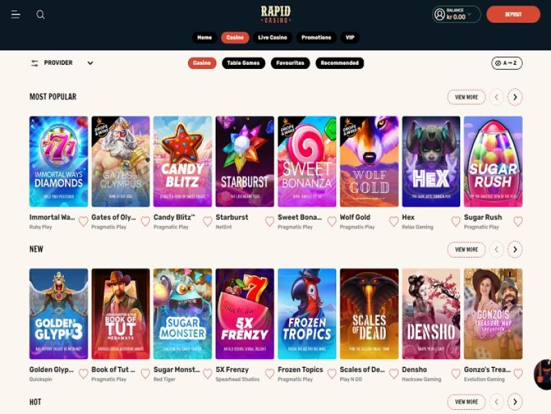 幸运的是,Rapid Casino 目前在选择合作伙伴方面做得很好,因为他们与Quickspin 、Microgaming、Betsoft、Yggdrasil、iSoftbet、Relax、NetEnt 等公司合作。