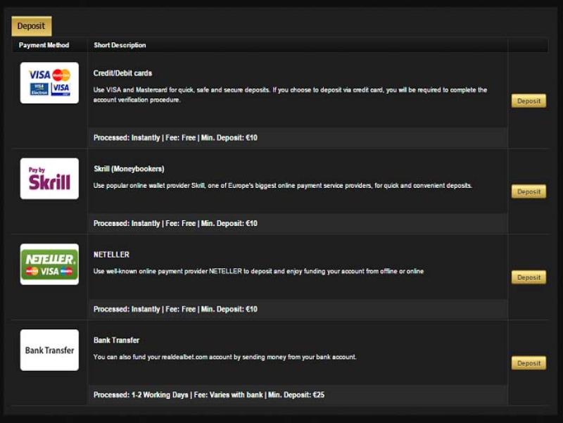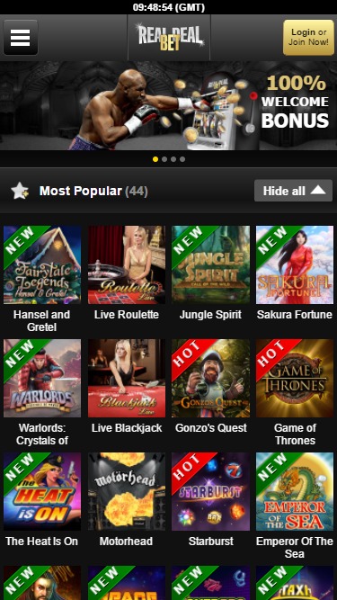 Real Deal Bet 由 Microgaming, Net Entertainment, Playtech, BetSoft, Big Time Gaming, Evolution Gaming, Genesis Gaming, iSoftBet, Play'n GO, playson, Quickspin, Rabcat, Gameplay Interactive, Games Global, 2by2 Gaming, Ainsworth, bluberi, GamesOS and Leander Games提供支持,赌场上的游戏通过基于网络的平台提供,玩家可以直接通过网络浏览器玩游戏。