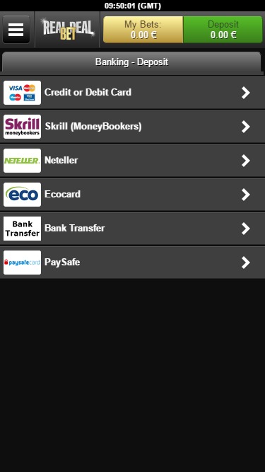 Banking银⾏业务选项 的 Real Deal Bet