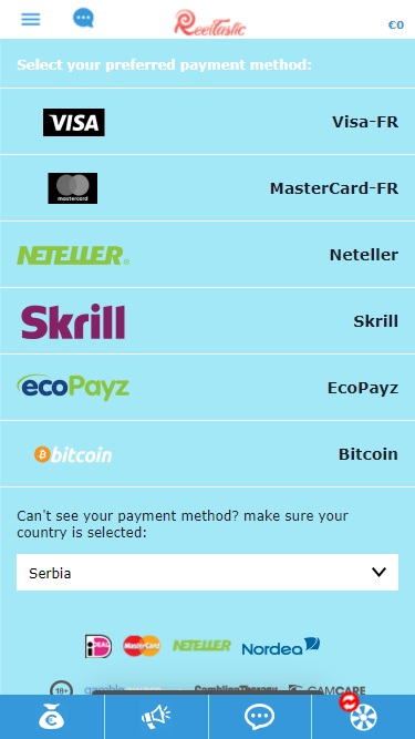 Reeltastic 的银行系统不太好。奖金到账需要 1-3 个工作日,而支付到电子钱包和信用卡可能需要额外一天时间。每月奖金提现限额仅为 5,000 欧元,这意味着中大奖的玩家需要等待很长时间才能拿到钱。