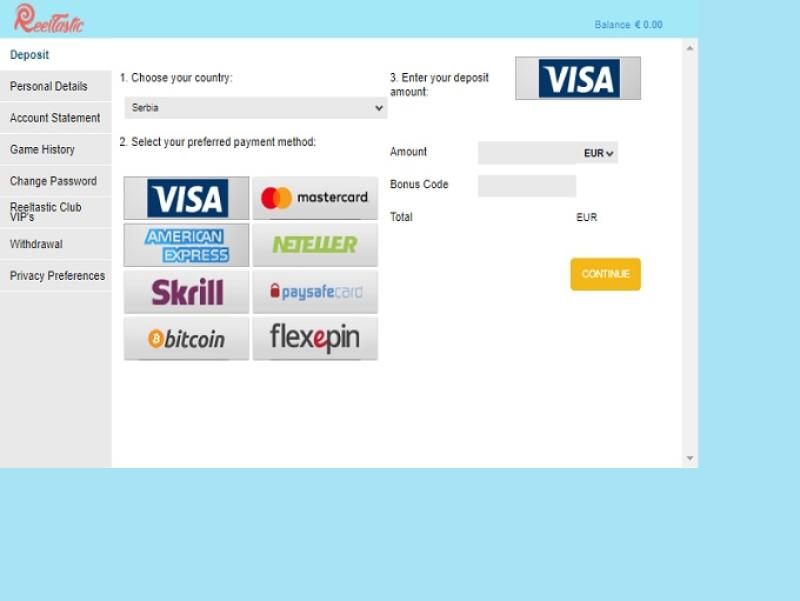 Banking银⾏业务选项 的 Reeltastic Casino