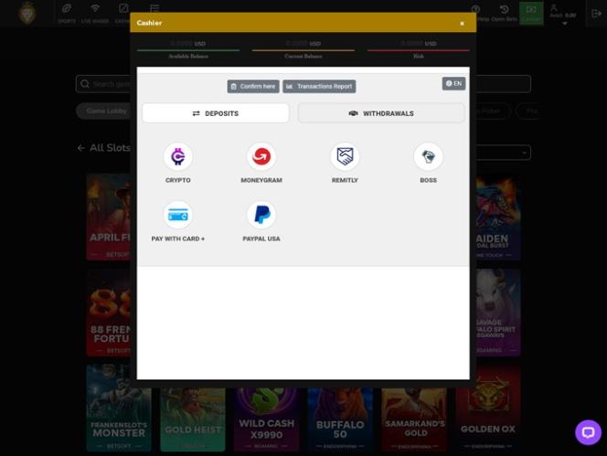 赌场主页提供赌场服务信息以及视觉效果精美的游戏网格。注册流程快捷简便,完成后,赌场会员即可访问一个用户友好的平台,该平台旨在满足体育博彩玩家和赌场玩家的需求。无论您的偏好如何,都能轻松上手,因为该平台简洁直观。