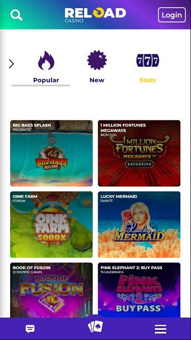 真人荷官赌场游戏是一个极具吸引力的类别,吸引着那些喜欢传统游戏刺激和刺激的玩家。Reload 提供的热门真人赌场游戏包括:Sweet Bonanza Candyland、真人二十一点、真人百家乐、闪电轮盘、自动轮盘1、百家乐大厅、龙虎斗、超级骰宝、轮盘、印度轮盘8、龙虎斗、大富翁等等。