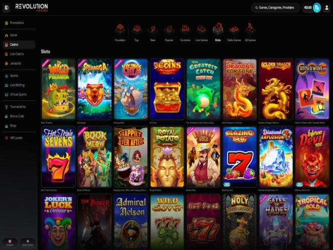 Revolution Casino 拥有超过 140 家不同的软件供应商,因此玩家可以选择的在线老虎机数量多得惊人。游戏选择真的多得惊人,其中最受欢迎的有: It's Shark Time、Blood Suckers、Tropical Gold、Aztec Sun Hold And Win、Diamond Explosion 7s、Multifly!、Money Train 3、Book off Doom、Eastern Emeralds Megaways、Very Hot 5、Seven Seven Pots and Pearls、Wolf Saga、Diamond Blitz、Rising Rewards、3x3 Hold The Spin、10 Wild Crown 和 Book of Oz。