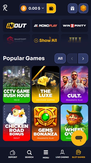 一旦加载赌场网站,您就会发现它采用了深色主题和现代化的界面,只需点击一两次即可轻松访问赌场的任何部分 。
