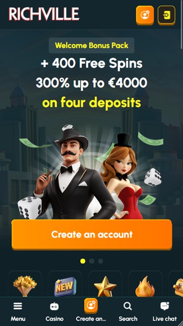 奖金和促销活动是任何现代在线赌场不可或缺的一部分,Richville 也不失时机地为玩家提供丰厚的奖励。欢迎礼包旨在提升新玩家的初始游戏体验。现有玩家还可以选择享受每周多次的奖金和现金返还优惠。