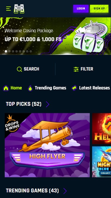 玩家进入网站后,将看到一个视觉上引人入胜且高度直观的界面,让他们可以轻松浏览所有游戏和赌场版块。即使在较旧的设备上,网站加载速度也很快,因此您可以享受流畅愉快的游戏体验。