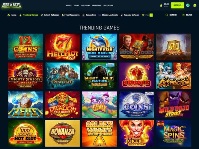 老虎机爱好者们一定会对琳琅满目的精彩在线老虎机游戏感到欣喜若狂。Rise of Bets Casino 汇集了种类繁多、精彩绝伦的老虎机游戏,几乎涵盖了所有类型和游戏类型,包括奖励购买、经典游戏、 Megaways 、Hold 'N Links 等等。