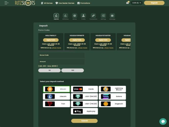Banking银⾏业务选项 的 RitzSlots Casino