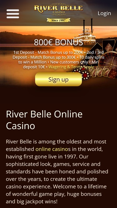 River Belle 赌场是一家在线博彩网站,成立于 1997 年。该赌场由马耳他 Digimedia 有限公司拥有和运营,该公司旗下还运营着许多其他赌场,且所有赌场的风格几乎完全相同。该赌场在业内人士和玩家眼中都享有盛誉,他们喜欢该网站庞大的游戏库、经验丰富的管理层和完善的银行系统。