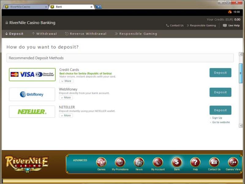 River Nile 赌场由 Microgaming and Games Global提供支持,拥有数百款游戏的庞大游戏库。您可以通过下载的软件或网络平台访问赌场,后者允许您直接通过网页浏览器进行游戏。此外,我们还提供移动网站,方便您在智能手机或平板电脑上玩游戏。Baccarat