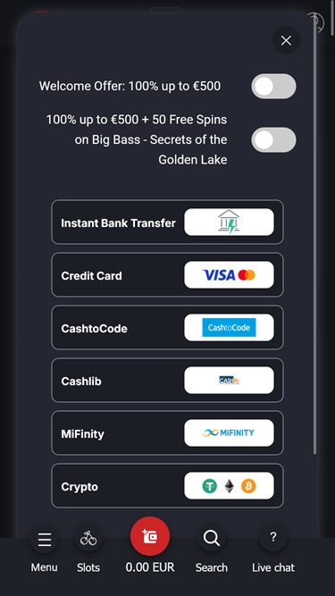 所有重要内容都可以在赌场菜单内屏幕左侧的几个易于访问的选项卡中找到。