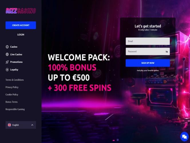 除了提供会员计划外,Rizz Casino 还为玩家提供多种促销和奖金优惠。如果您想创建账户,可以领取注册奖金,在初始阶段大幅提升您的游戏体验。
