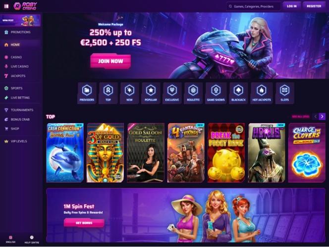 Robycasino 是一家在线赌场和体育博彩平台,提供丰富的游戏选择,满足您的各种需求。无论您是想体验二十一点、扑克、百家乐和老虎机等赌场游戏,还是想参与欧冠联赛、UFC 比赛甚至电子竞技等大型体育赛事,都能在这里找到。