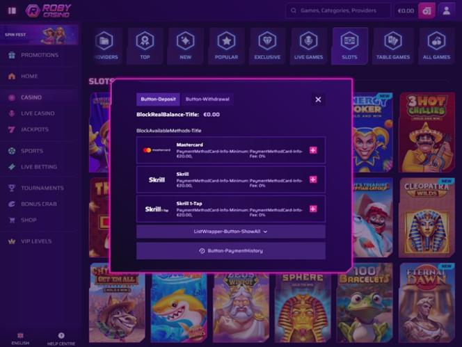 Robycasino 也接受加密货币,因此,如果您打算使用Tether 、比特币、以太坊或其他一些流行的货币,您不仅可以为您的账户充值,还可以使用它们提取您的奖金。
