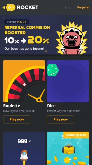 Rocket.run 使用其专有软件为玩家提供游戏。该网站界面美观,易于浏览,尤其是在游戏数量较少的情况下。您可以使用台式电脑或移动设备访问该网站,并且两者的运行效果都一样出色。负责任赌博, 客服⽀援 & 安全性