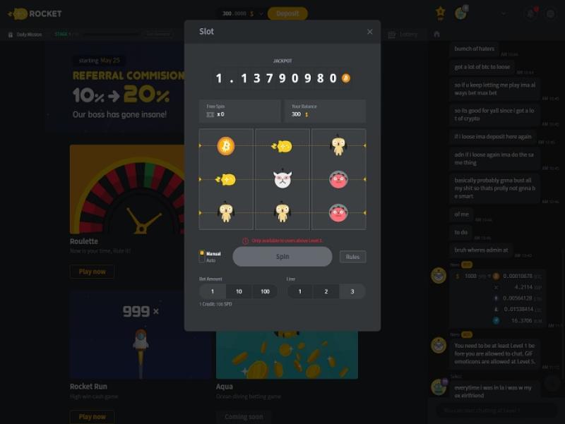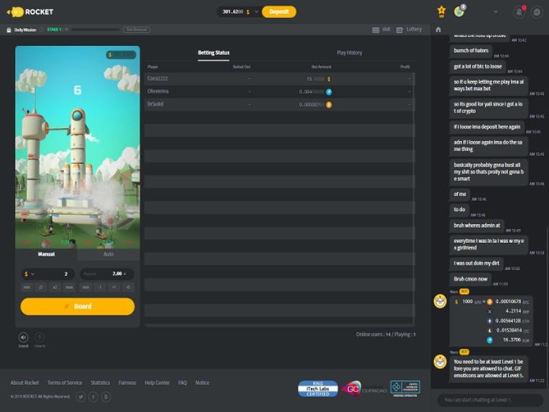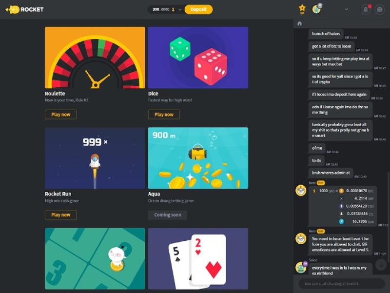 Rocket.run 的银行业务完全使用加密货币进行,用户可以使用 BTC、XRP、ETH、LTC 和 XLM 进行存款和取款。支付时间为即时到账,并且我们目前没有发现任何支付限制。