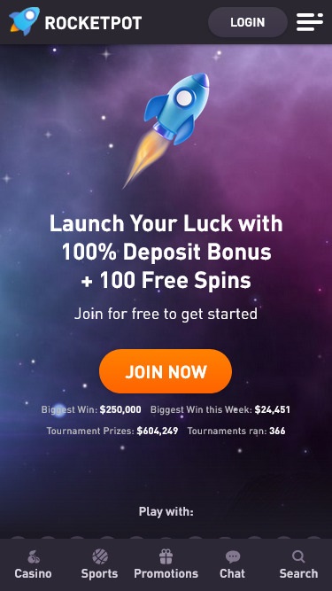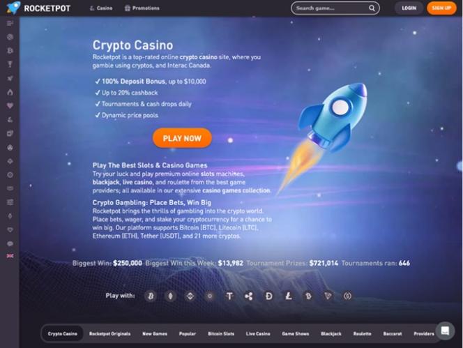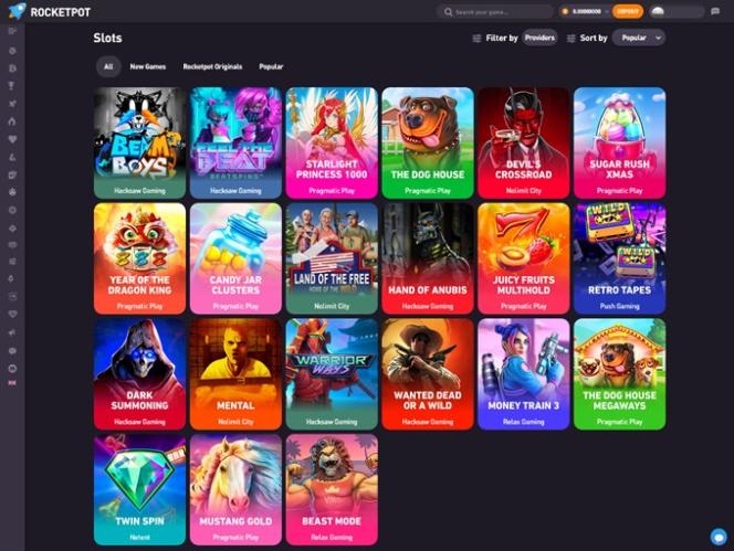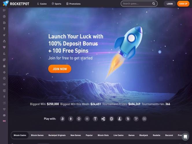 Rocketpot Casino 是一家信誉卓著、支持加密货币的在线赌场,致力于为所有会员提供最佳体验!它拥有超过 3,000 款由全球领先软件供应商提供支持的精彩游戏,并提供各种奖励和促销活动,助您畅享游戏乐趣!