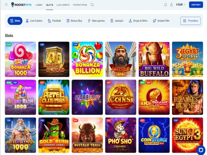 例如,RocketSpin 赌场拥有令人惊艳的软件供应商选择。他们的软件库涵盖了超过 160 家工作室,这可不是个小数目。在这里玩游戏,您将享受数千小时的乐趣,并拥有似乎无穷无尽的产品供您探索。