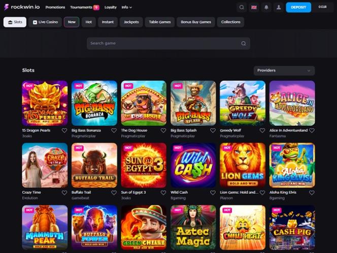 Rockwin 与Evolution Gaming 、BetSoft、Wasdan、Yggdrasil 等多家知名游戏开发商合作,为玩家提供高质量的游戏内容。玩家可以体验海量的老虎机游戏、即时游戏和经典桌面游戏,当然,也别忘了体验令人印象深刻的真人荷官游戏。以下是一些可供选择的游戏:
