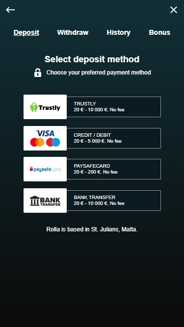 Rolla Casino 由 Microgaming, Net Entertainment, BetSoft, Evolution Gaming, Play'n GO, Quickspin, Yggdrasil, Pragmatic Play, Nolimit City, Red Tiger Gaming and Games Global提供支持,其赌场游戏可通过网页即时游戏平台进行。这意味着您可以通过您常用的浏览器访问赌场,无需下载任何繁琐的软件。此外,它还内置移动游戏功能,方便您通过智能手机或平板电脑进行博彩。