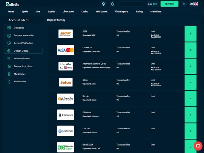 虽然传统的在线博彩无疑是该品牌的主要卖点,但这并不意味着其体育博彩就逊色。Rolletto 为体育博彩爱好者准备了大量的体育赛事和投注选项。该版块内容丰富,几乎涵盖了现代体育博彩版块应有的所有功能,包括滚球投注和虚拟体育。